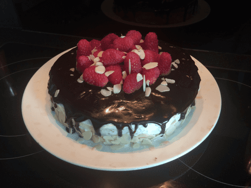 Сверху вылить остывшую глазурь и выравнить топовый слой. Бока торта могут быть в глазури, могут быть со стекающими струйками. Это дело вкуса.