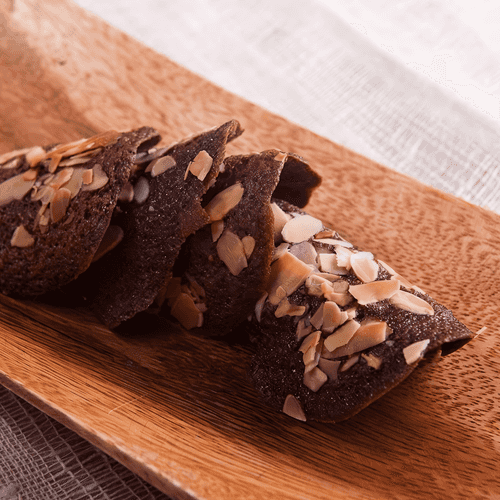 Шоколадное сахарное печенье — воплощение американской кулинарной традиции, которая объединяет нежность меда, насыщенность какао и воздушную текстуру белков. Это лакомство, зародившееся в домах заботливых кондитеров, отличается хрупкостью и тонкостью. При выпекании печенье приобретает мягкость, а затем становится хрустящим, напоминая нежные вафли с глубоким шоколадным ароматом. Добавленные миндальные хлопья придают ему изысканный ореховый вкус, который гармонирует с теплым, сладким привкусом меда. Идеальное угощение к утреннему кофе или послеобеденному чаю, эти печенья могут быть не только классическими, но и закрученными в элегантные формы, превращаясь в особый праздничный десерт.