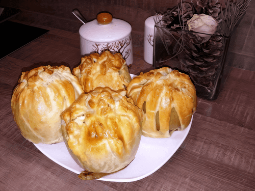 Запеченные яблоки в слоеном тесте – это уютное и домашнее угощение, укоренившееся в русской кухне. Оно напоминает традиционные пироги с яблоками, но имеет особый шарм благодаря воздушному слоеному тесту. Сладость печеного яблока, смягченного жаром, соединяется с карамельными нотками сахара, а хрустящее тесто добавляет текстурный контраст. Запах, наполняющий кухню во время запекания, пробуждает теплые воспоминания о детстве и семейных вечерах. Блюдо отлично подходит как для уютного чаепития, так и для праздничного застолья. Можно подавать с шариком ванильного мороженого или медовым соусом, усиливая его нежный вкус. Простота приготовления делает этот рецепт доступным даже для новичков, а результат всегда радует как внешним видом, так и вкусом.