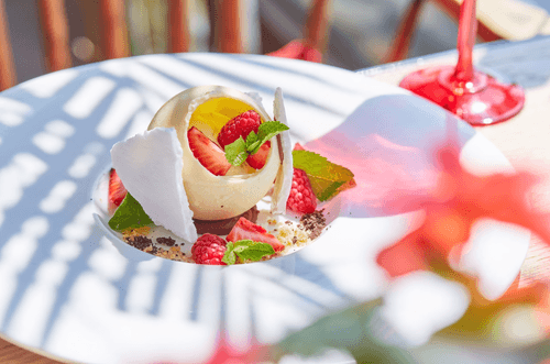 Миндальный парфе — изысканный французский десерт, завораживающий гармонией вкусов и утонченностью подачи. Его история уходит корнями в традиции семифредо, нежного замороженного лакомства, популярного среди гурманов. В основе десерта — воздушное миндальное безе, хрустящее и сладкое, контрастирующее с бархатистой текстурой сливочной массы. Белый шоколад превращает парфе в настоящее произведение искусства, заключая его в элегантную сферу. Каждая ложка раскрывает богатство вкусов: сладость сахара, ореховую глубину миндаля и освежающие нотки клубники и малины. Украшенный листьями мяты, этот десерт не только радует вкусом, но и превращает подачу в настоящее визуальное наслаждение. Миндальный парфе — идеальный выбор для тех, кто ценит изысканность и утонченность французской кухни.