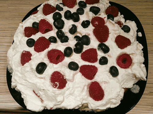 Пирог с ягодами, кремом и взбитыми сливками
