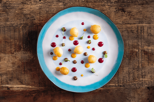 Пончики можно подавать по 5 штук на порцию. Можно добавить любой соус: манго, черника, черная смородина, шоколад.