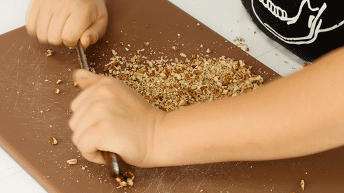 Переложить тесто в форму, проложенную пергаментной бумагой, посыпать беконом и пеканом. Выпекать 40 минут в духовке, разогретой до 180 градусов.