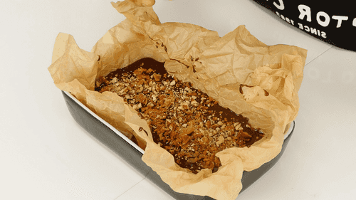 Бекон тоже отправить в духовку к брауни, вытопить жир. Это займет 20-30 минут.