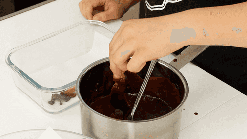 В чаще взбить два вида сахара, 2 столовые ложки жира от бекона, бурбон, яйца и соль. Добавить просеянную муку с какао и взбить до однородной массы.