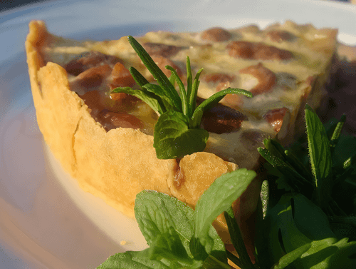 Пирог с зеленой фасолью и ветчиной — это гармония простых, но насыщенных вкусов, рожденная в традициях русской кухни. Хрустящее тесто, приготовленное на основе сливочного масла и сметаны, идеально дополняет сочную начинку из зеленой фасоли, нежной ветчины, ароматного тимьяна и запеченных помидоров. Яичная заливка придает пирогу мягкость и связывает ингредиенты, а золотистая корочка из расплавленного сыра завершает композицию. Этот пирог можно подать как основное блюдо или как аппетитную закуску на семейном ужине. Он удивляет своей универсальностью: его можно есть теплым и холодным, а сочетание овощей и мяса делает его питательным и сбалансированным. Великолепное угощение для тех, кто ценит домашний уют и вкусные, душевные блюда.