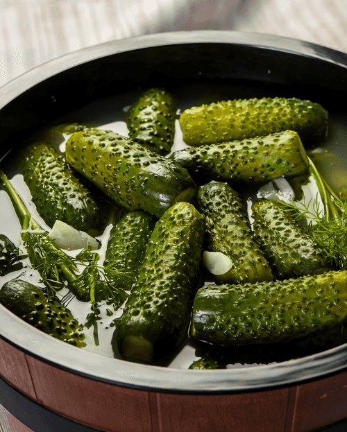 Малосольные корнишоны – это свежий и ароматный деликатес русской кухни, который покоряет своим хрустом и нежным кисло-сладким вкусом. Их история уходит в далекое прошлое, когда люди искали способы быстрого соления овощей для сохранения их свежести. В отличие от традиционных маринованных огурцов, малосольные имеют более мягкий вкус и готовятся всего за день. В этом рецепте используются душистые травы и специи, такие как укроп, петрушка и листья черной смородины, которые придают огурцам насыщенный аромат. Рассол на основе соли, сахара и уксуса обеспечивает идеальный баланс вкуса. Эти корнишоны идеально подходят как закуска к основным блюдам, прекрасно дополняя мясные и картофельные блюда, и являются неотъемлемой частью летнего стола.