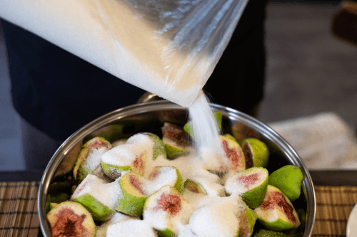 Засыпать инжир сахаром, накрыть крышкой и оставить на несколько часов, пока инжир не даст сок.