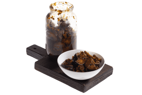 Баклажан — удивительный продукт, в домашних консервах явно недооцененный. Чаще всего в России из него делают икру, превращая изумительную мякоть, в которой слышится что-то мясное, в невразумительную бурую кашу. Мы же решили пойти британским путем и подсмотрели, как Джейми Оливер маринует английские пикули из крупно нарезанных кусков овощей с невообразимым количеством специй. Баклажану этот способ особенно подходит: куски баклажана с готовностью впитывают ароматы карри, тмина и горчицы и, помариновавшись в банке, не требуют ничего, кроме разве что куска хорошего бородинского хлеба. С итальянской чиабаттой тоже будет неплохо — особенно если сбрызнуть ломтики хлеба оливковым маслом и поджарить до хруста.