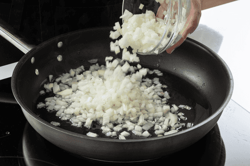 Лук нарезать мелкими кубиками и обжарить на растительном масле до прозрачности.
