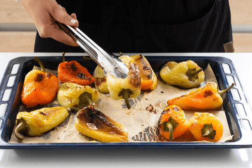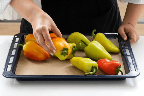 Разложить перец на застеленном пергаментом противне.