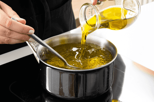 Добавить в воду со специями оливковое масло, перемешать.