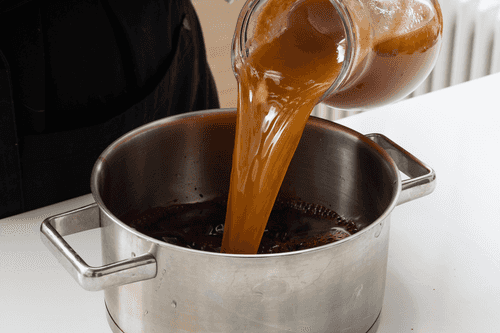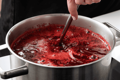 Помешивая, довести почти до кипения. Как только появятся первые пузырьки, снять с огня, разлить по банкам.