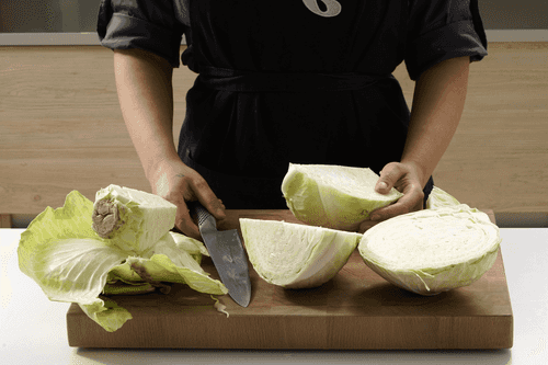 У капусты удалить верхние жесткие листья, вырезать кочерыжку.