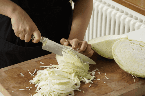 Тонко нашинковать капусту.