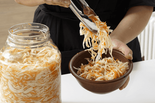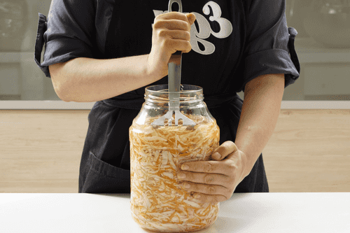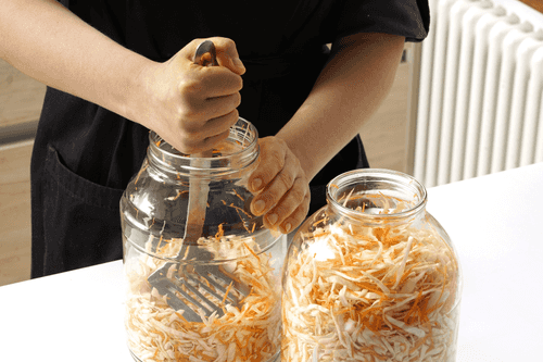 Проверить — рассол должен полностью покрывать капусту. Если нет, тщательно ее утрамбовать. Накрыть крышками и оставить в темном месте при комнатной температуре.