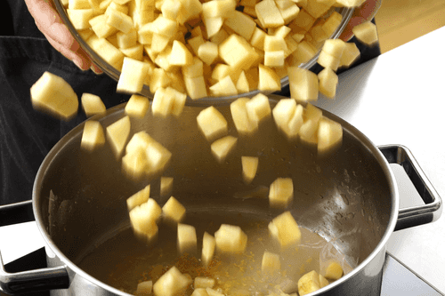 Нарезать яблоки кубиками.