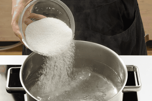 Воду с сахаром довести до кипения в большой кастрюле.