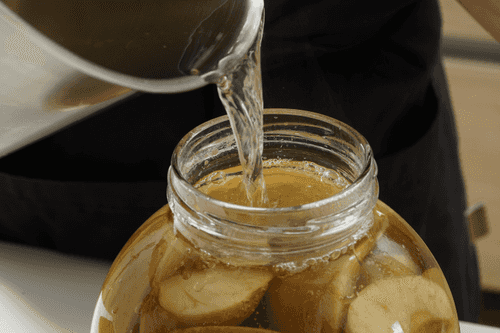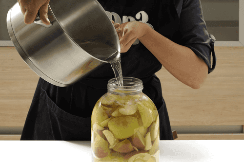 Залить сироп в банки до самого края.