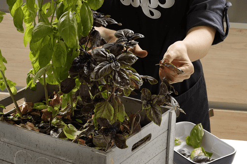 Оборвать листья базилика с веточек, помыть.