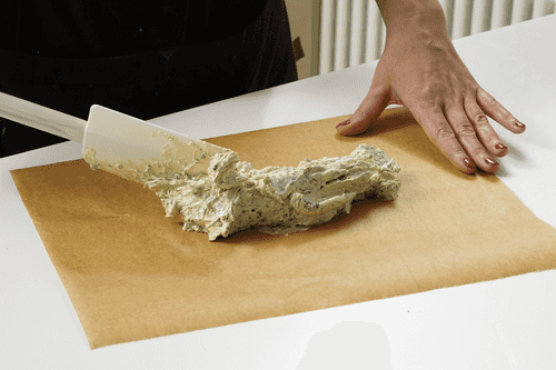 Выложить масло на пергамент.
