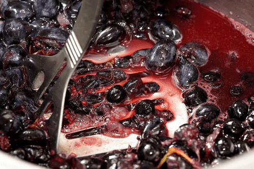 Еще один неожиданный, но очень продуктивный дуэт: виноград в этом повидле можно использовать и красный, и белый, главное — без косточек, чтобы ничего постороннего потом не путалось на языке. И если сравнение природного танинного привкуса черноплодки с вином напрашивается само собой, то добавление винограда это сходство только усиливает. Еще один лайфхак: стоит сдобрить повидло умеренным количеством острого перца, жареного лука и каких-нибудь душистых приправ, вроде тимьяна и розмарина, разбавить до нужной консистенции бульоном и проварить, получится уже не сладость, а сладковатый терпкий соус для мяса и птицы с нотками благородного портвейна.