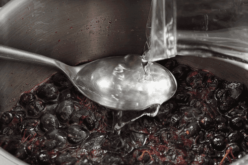 Поставить сотейник с ягодами на тихий огонь, довести до кипения. Варить ягоды 10 минут. Если воды будет не хватать, понемногу доливать еще.