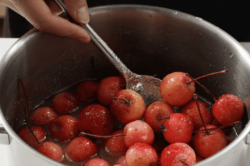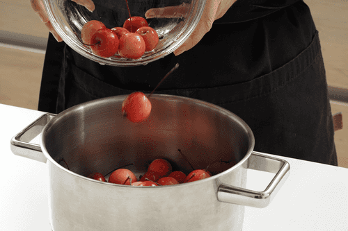 Выложить ранетки в подходящую по размеру кастрюлю.