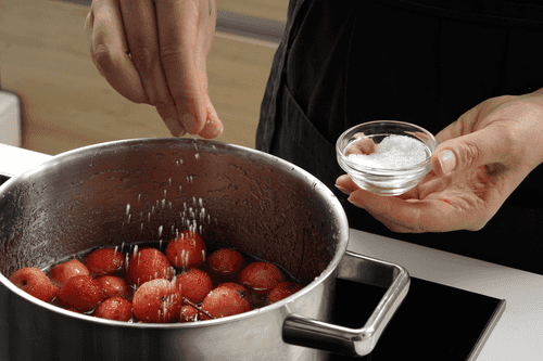 Приготовление варенья проходит через три этапа. Сначала яблоки необходимо засыпать сахаром и оставить на некоторое время, чтобы они пустили сок. Затем следует быстро прокипятить массу трижды, обеспечивая при этом остывание между варками. Каждый новый этап варки способствует более глубокому карамелизации яблок, что позволяет сохранить их текстуру и не превращает в пюре. Для достижения прозрачности сиропа в процессе первой варки добавляют небольшое количество лимонной кислоты.
