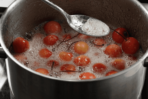 На небольшом огне варить ранетки 10 минут, снимая пену. В самом начале варки добавить щепотку лимонной кислоты, чтобы варенье было прозрачным.