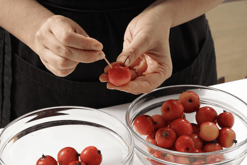 При помощи зубочистки проткнуть кожуру на яблоках в нескольких местах.