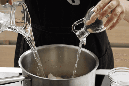 Приготовить маринад. В кастрюле соединить воду, уксус и сахар.