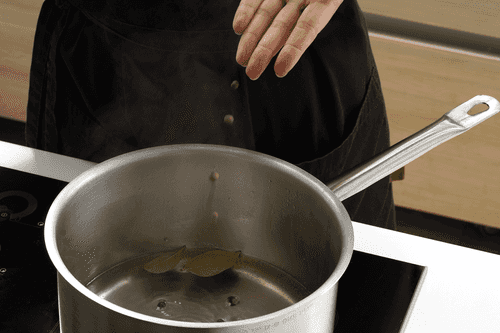 Добавить душистый перец, лавровый лист и довести до кипения.