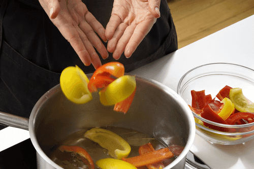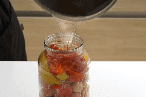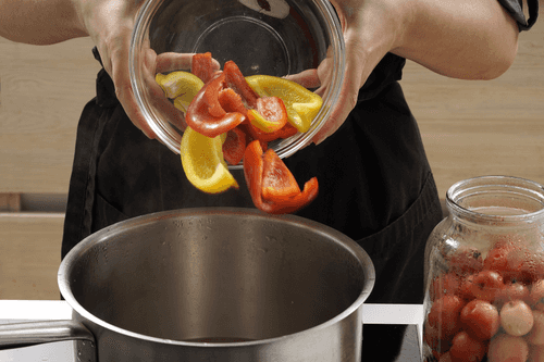 Половину перца опустить в кипящий маринад на 1–2 минуты. Если его передержать, он станет мягким.