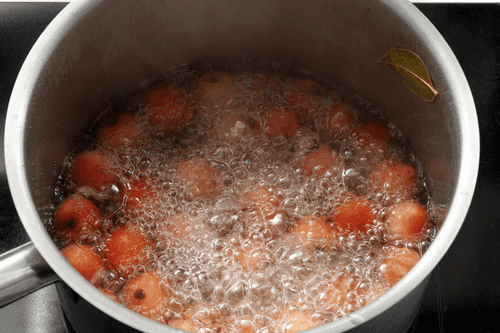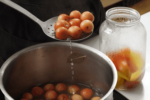 Затем бланшировать в маринаде яблоки в течение 4 минут.