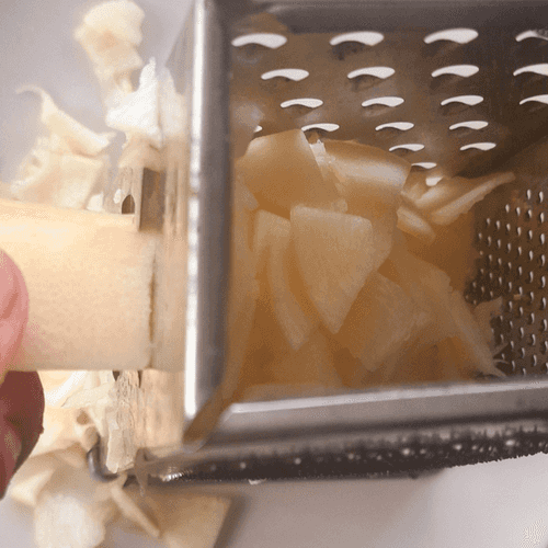 Очистить имбирь при помощи чайной ложки и натереть вместе с чесноком на мелкой терке.
