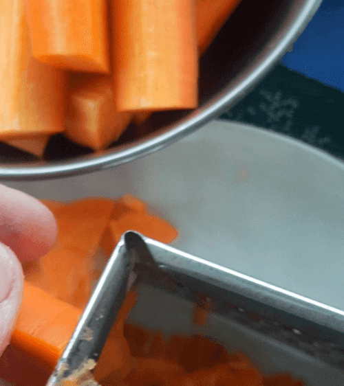 Нарезать морковь тонкими дольками при помощи мандолины или на самой крупной насадке терки.