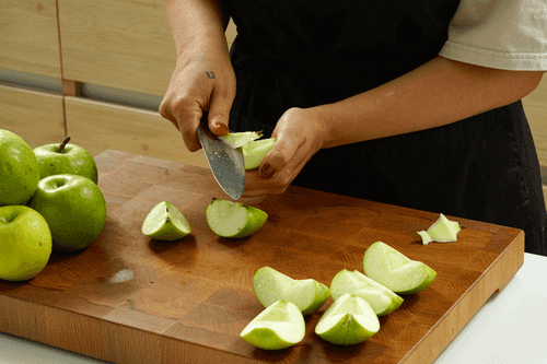 Помыть яблоки. Крупно нарезать и избавить от сердцевины.