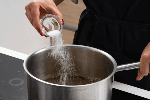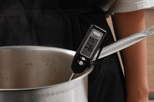 Поставить кастрюлю на слабый огонь. Довести сок до температуры 90–95 градусов.
