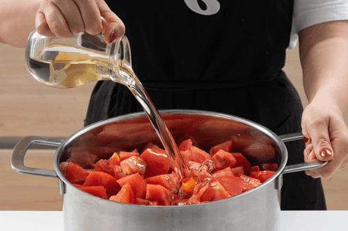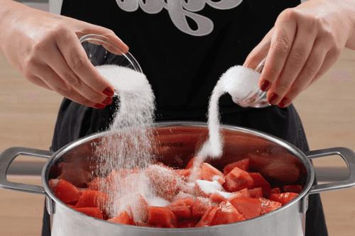 Добавить уксус, воду, соль, сахар и хорошо перемешать.
