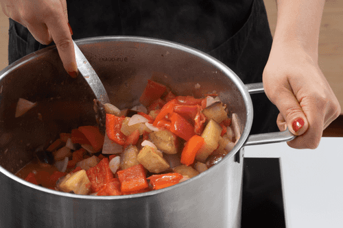 Довести овощи до кипения и варить под крышкой 30–35 минут на слабом огне.