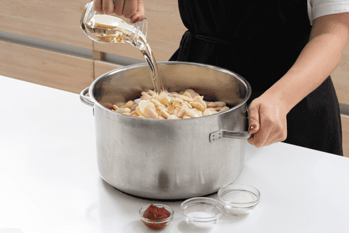Добавить соль, сахар, томатную пасту, растительное масло. Перемешать.