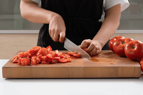Таким же кубиком нарезать помидоры.