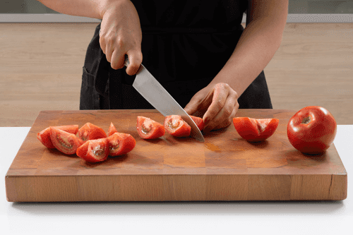 Помидоры разрезать на четыре-шесть частей.
