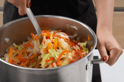 Довести до кипения и варить на слабом огне 30 минут, до мягкости овощей.