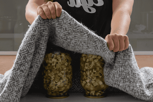 Готовые банки с кабачками закрутить крышками, перевернуть и накрыть одеялом. Оставить до полного остывания.