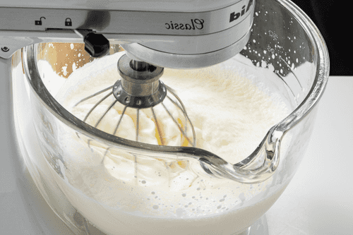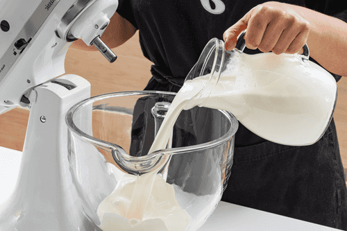 Вылить сливки в чашу миксера.
