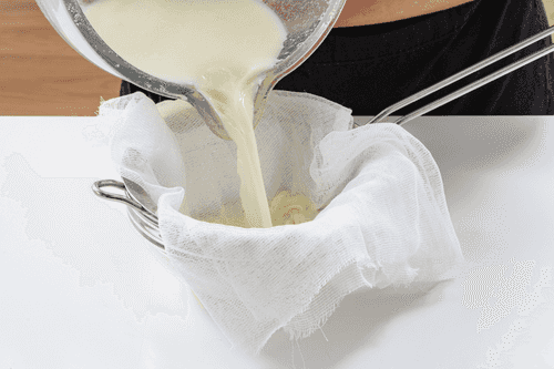 Продолжить взбивать, пока сливки не расслоятся на жир и сыворотку — это пахта.