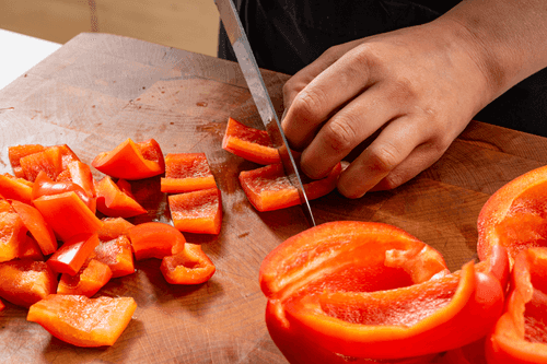 Перцы очистить от семян и белых прожилок. Крупно нарезать.