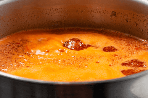 Переложить перечное пюре в кастрюлю.